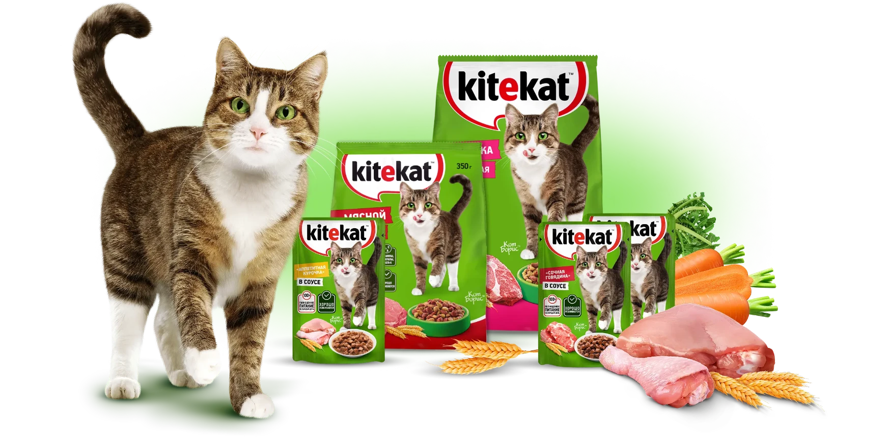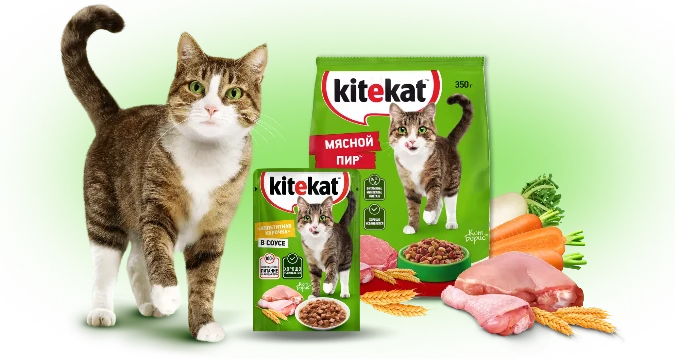 В корме KITEKAT™ состав разработан с участием ветеринарных врачей, в рационе есть все необходимые питательные вещества, технологический процесс исключает бактериальное заражение. Промышленный корм для кошек KITEKAT™ — это удобство и уверенность в безопасности и качестве продукта.