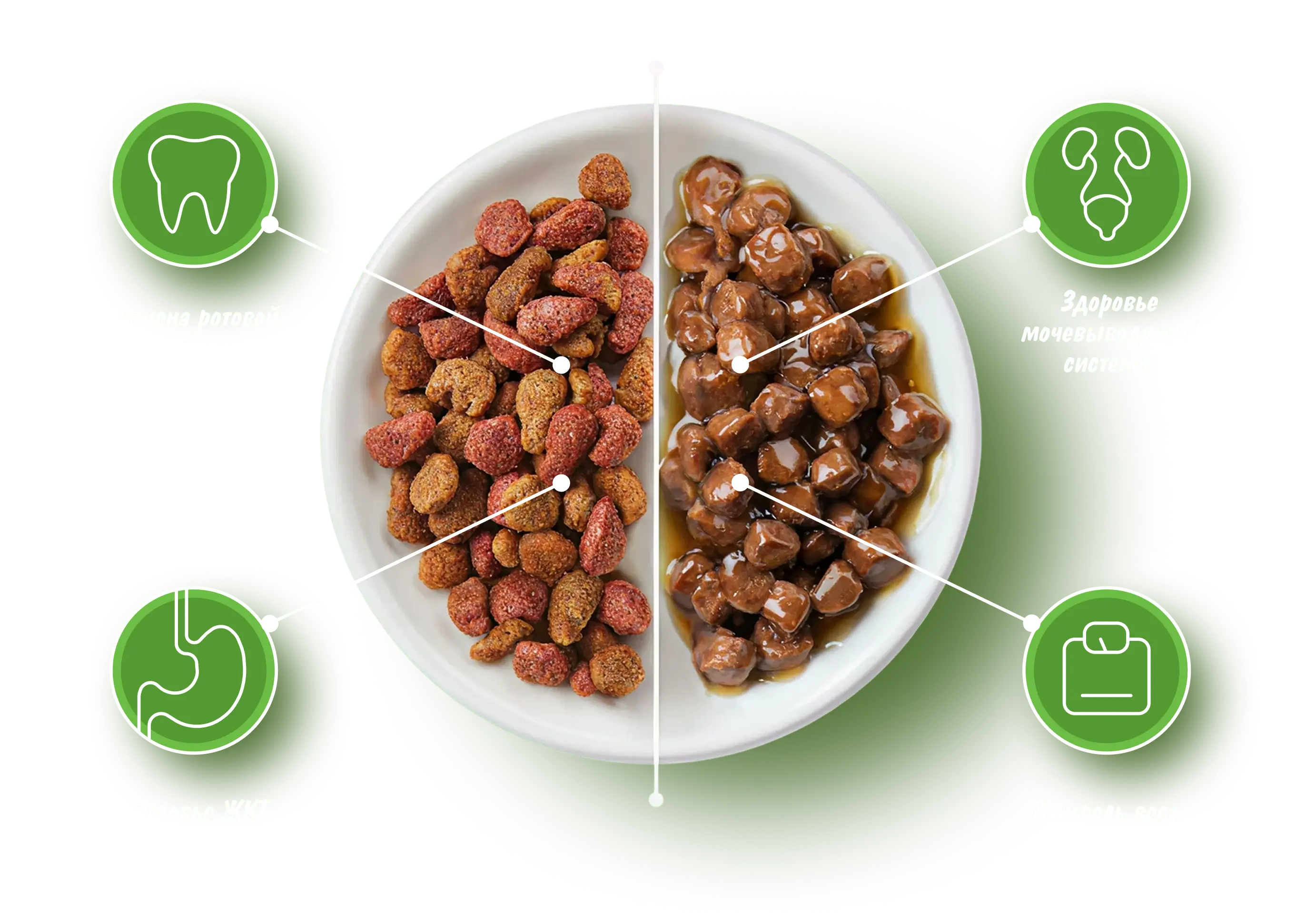 Сохранение свежести и безопасность продукта обеспечивается технологией приготовления корма и специальной упаковкой.